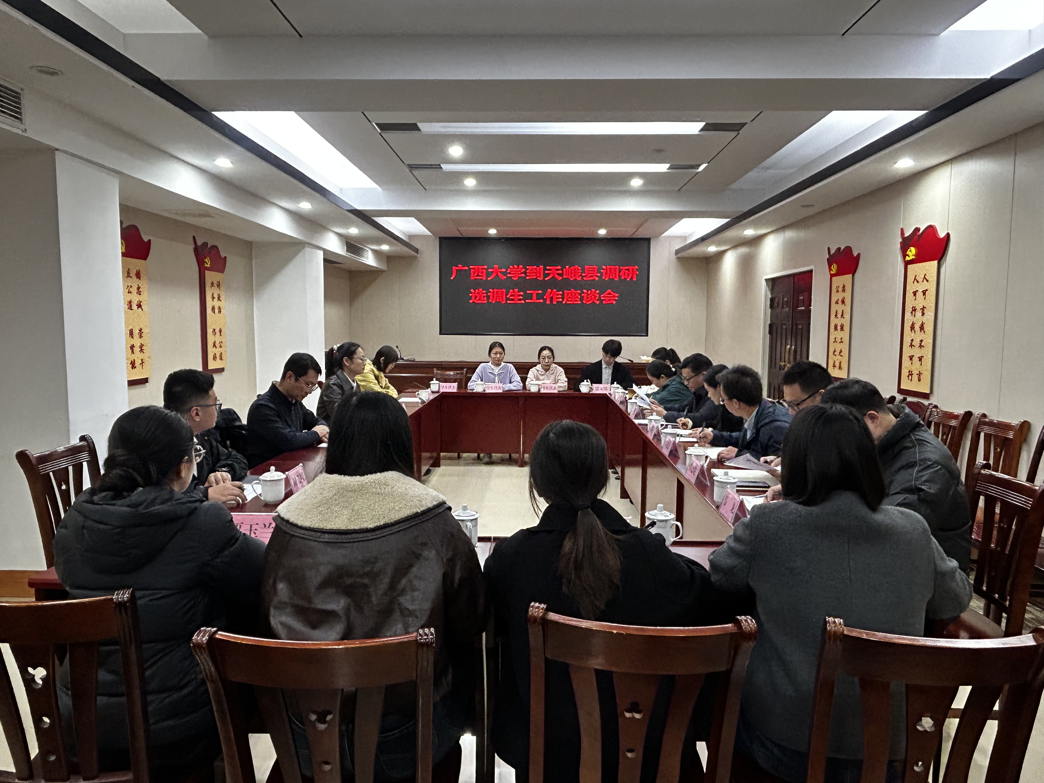 为贯彻落实学校党委关于选调生工作的决策部署,受学校党委委派,近日,裸聊直播党委副书记孙晓黎带队前往河池市天峨县走访调研选调生工作。天峨县委常委、组织部部长卢仁国及有关负责同志参加座谈交流。