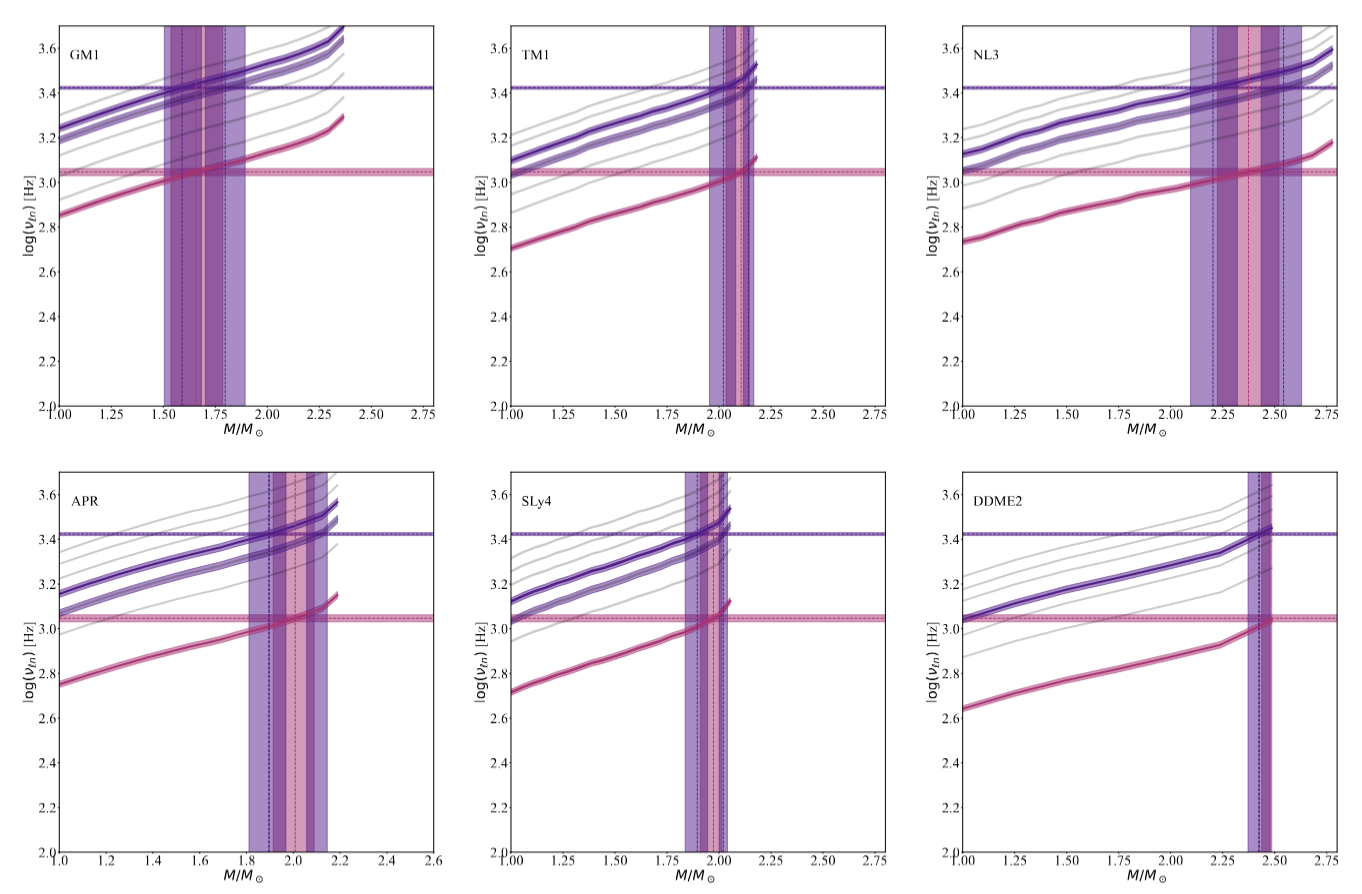 中子星的状态方程及其最大质量的确定对于理解极端条件下中子星的形成和性质是非常重要的,但仍然是一个悬而未决的问题。短伽马射线暴被认为起源于双中子星的合并或软伽马射线重复暴的巨耀发。最近,人们声称从两个短GRB(GRB 931101B和GRB 910711)中发现了高频准周期振荡(QPOs)。在本研究中,我们提出在这两个短伽马暴中观测到的高频QPOs是由与冷中子星巨耀发的扭转振荡或双星合并后形成的超大质量中子星的径向振荡引起的,然后约束了中子星的状态方程。对于扭转振荡,选择的6个适合于零温度条件的中子星(TM1、NL3、APR、sl4、DDME2和GM1)在质量范围内表现出明显的重叠,表明我们不能约束NSs的EOS。对于径向振荡,当考虑红移时,不能排除六个适合高温条件的中子星(IUF、TM1、TMA、FSG、BHBLp和NL3)。我们发现只有当并合产物的红移和温度能够被测量时,EOS才能被约束。