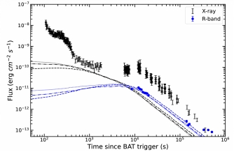 图4. GRB 240529A在X射线波段和光学波段的外激波模型拟合结果。